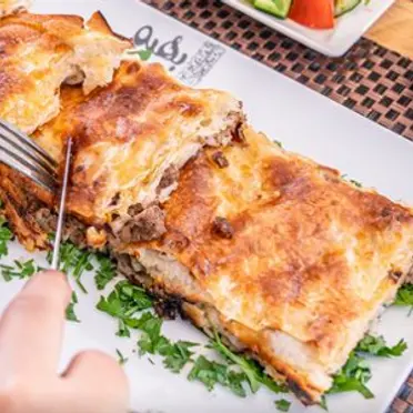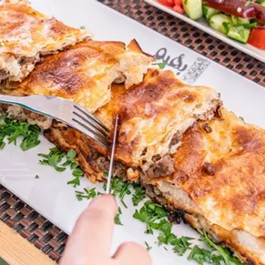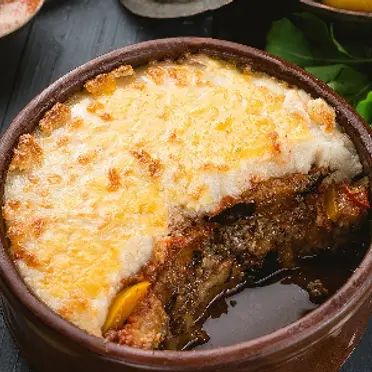 90 E.G.PMesakaa With Minced MeatCasserole dish with minced meat and vegetables.