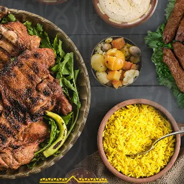 984 E.G.PBahia Tray1. 5 kilo, nefa, kofta, tarb and shish tawook, served with rice, 2 green salad, 2 sesame paste salad and bread.