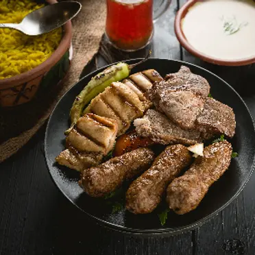 156 E.G.PMix Grills And Kofta MealGrilled quarter chicken and kofta, served with rice and bread.