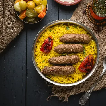 336 E.G.PBahia MixKebab, kofta, tarb, oriental sausage and liver, served with khalta rice.