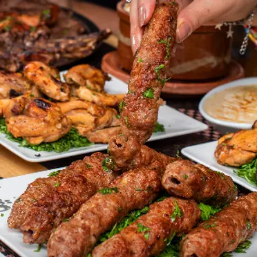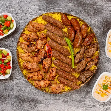 972 E.G.PElbaraka TrayOne kilo of shish tawook, half a kilo of baladi kofta, half a kilo of oriental sausage, half a kilo of mumbar, basmati rice, 2 green salads, 2 tahini and bread.