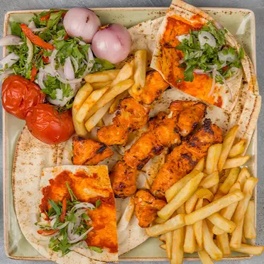 140 E.G.PShish Tawook PlatterPlatter featuring grilled marinated chicken shish tawook.