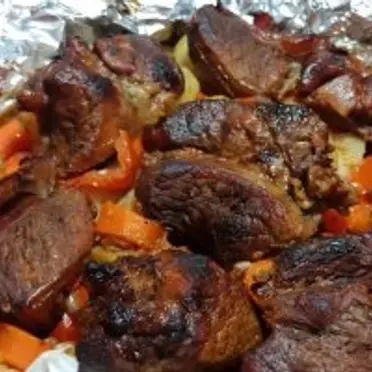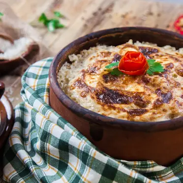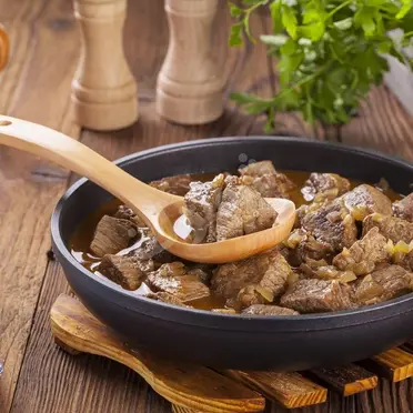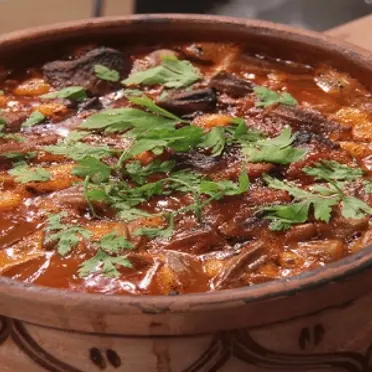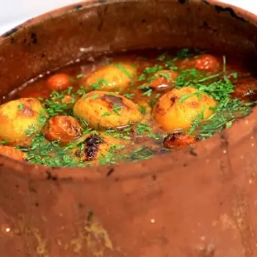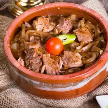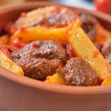 195 E.G.PMeat CasseroleSlow-cooked to perfection, this savory dish combines tender pieces of meat with aromatic spices and a rich sauc