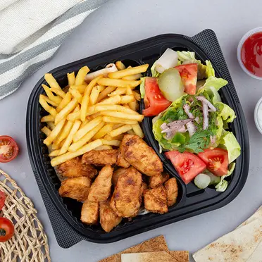 90 E.G.PQuarter Chicken Breast MealRice, salad, tahini, and bread.