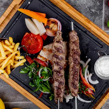 By select priceMix Kebab And KoftaKebab and kofta, served with green salad, sesame paste salad and bread
