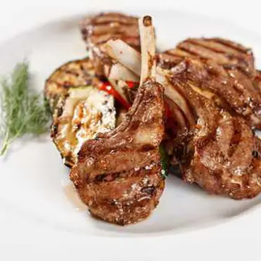 225 E.G.PVeal Ribs PlatterRice, green salad, tahini, and bread.
