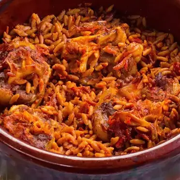 195 E.G.POrzo with Meat CasseroleCasserole dish made with orzo pasta and meat.
