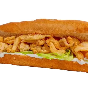 81 E.G.PSquid SandwichIndulge in the taste of the ocean with our Squid Sandwich, made with crispy and tender squid, fresh lettuce, juicy tomatoes, and a zesty sauce, all served on a soft bun.