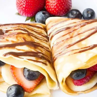 75 E.G.PChocolate CrepeSatisfy your sweet tooth with our decadent Chocolate Crepe, filled with rich melted chocolate and drizzled with more for a chocolate lover's paradise.