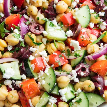 34 E.G.PChickpeas SaladNutty chickpeas combined with fresh vegetables and zesty dressing.