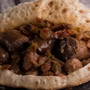 23 E.G.PFoul With Oriental Sausage SandwichFoul with oriental sausage sandwich, combining the earthy richness of foul beans with the savory indulgence of oriental sausage.