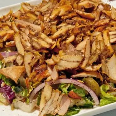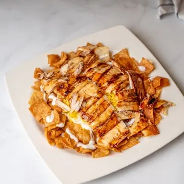 188 E.G.PChicken Shawerma FattehTreat your taste buds to our Chicken Shawerma Fatteh, a Middle Eastern delight made with tender chicken shawarma, crispy pita chips, creamy hummus, and drizzled with a tangy garlic yogurt sauce.