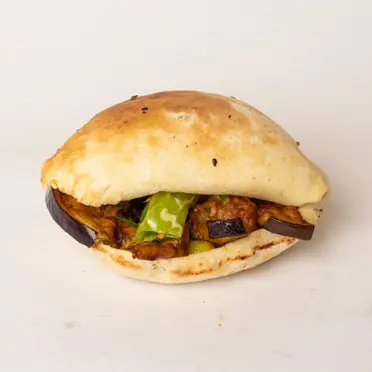 18 E.G.PFried Eggplant With Vinegar And Garlic SandwichServed in shami bread.