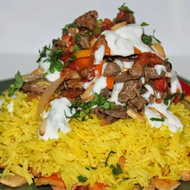 188 E.G.PMeat Shawerma FattehDelight in the flavorful bliss of our Meat Shawerma Fatteh, a mouthwatering combination of tender marinated meat, aromatic spices, crispy bread, and creamy yogurt sauce, creating a tantalizing Middle Eastern feast.