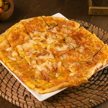 150 E.G.PMeat Shawerma PizzaEmbark on a flavor-packed journey with our Meat Shawarma Pizza, where tender, marinated meat meets the warmth of freshly baked dough, delivering a savory delight that will transport your taste buds to new heights.