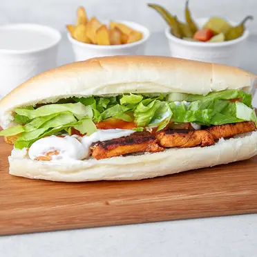 By select priceChicken Shawerma SandwichMade with tender, marinated chicken that is slow-cooked on a spit, and served with lettuce and tahini sauce, wrapped in a bread, it's a perfect meal for those who love flavorful and hearty sandwiches.