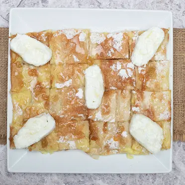 138 E.G.PRoumi Cheese PieIndulge in the rich and creamy goodness of Roumi Cheese Pie, with its flaky golden crust and perfectly seasoned filling of tangy and velvety cheese.