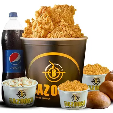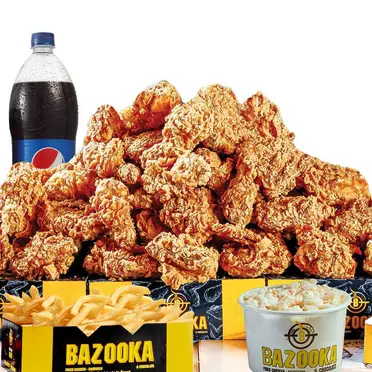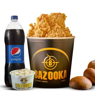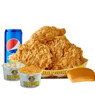 15 chicken pieces, served with family french fries, large coleslaw salad, liter pepsi and bread.