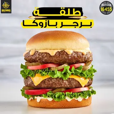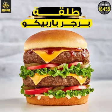 Grilled burger, cheddar cheese, creamy mayonnaise, jalapeno, lettuce, tomato, onion and special bazooka sauce.
