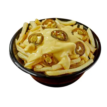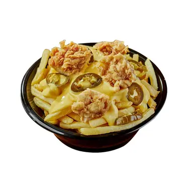 Chicken slices, jalapeno, french fries and cheddar cheese sauce.