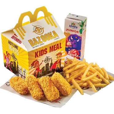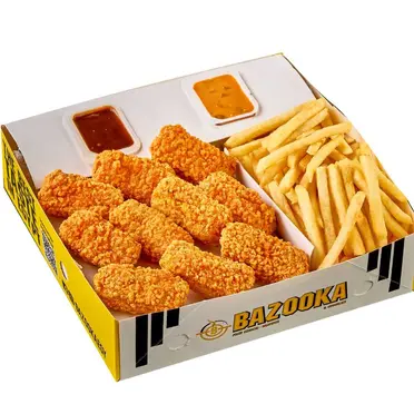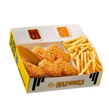 5 boneless pieces + fries + 2 sauces + 1 bread