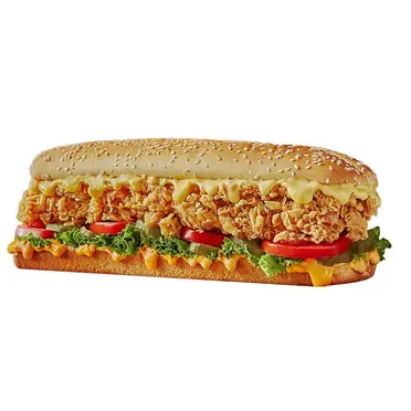 Spicy Crispy Chicken Breasts, Chicken Fajita, Melted Cheese Sauce, Spicy Mexican Sauce, Lettuce, Tomato, Pickled Cucumber, Mayonnaise